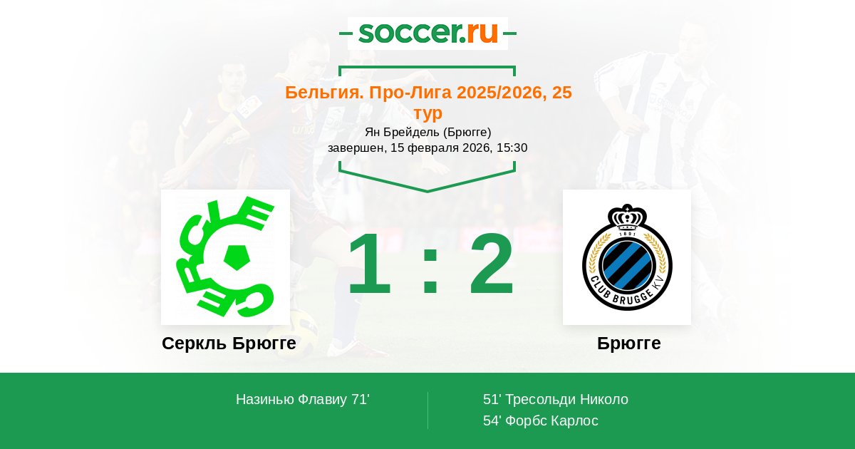Серкль Брюгге - Брюгге: обзор матча 15 февраля 2026