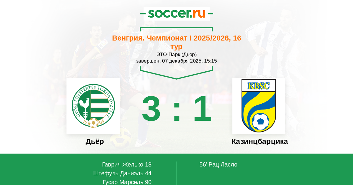 Дьёр - Казинцбарцика: обзор матча 7 декабря 2025