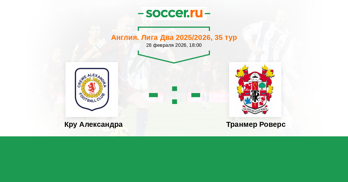Кру Александра - Транмер Роверс турнирная таблица