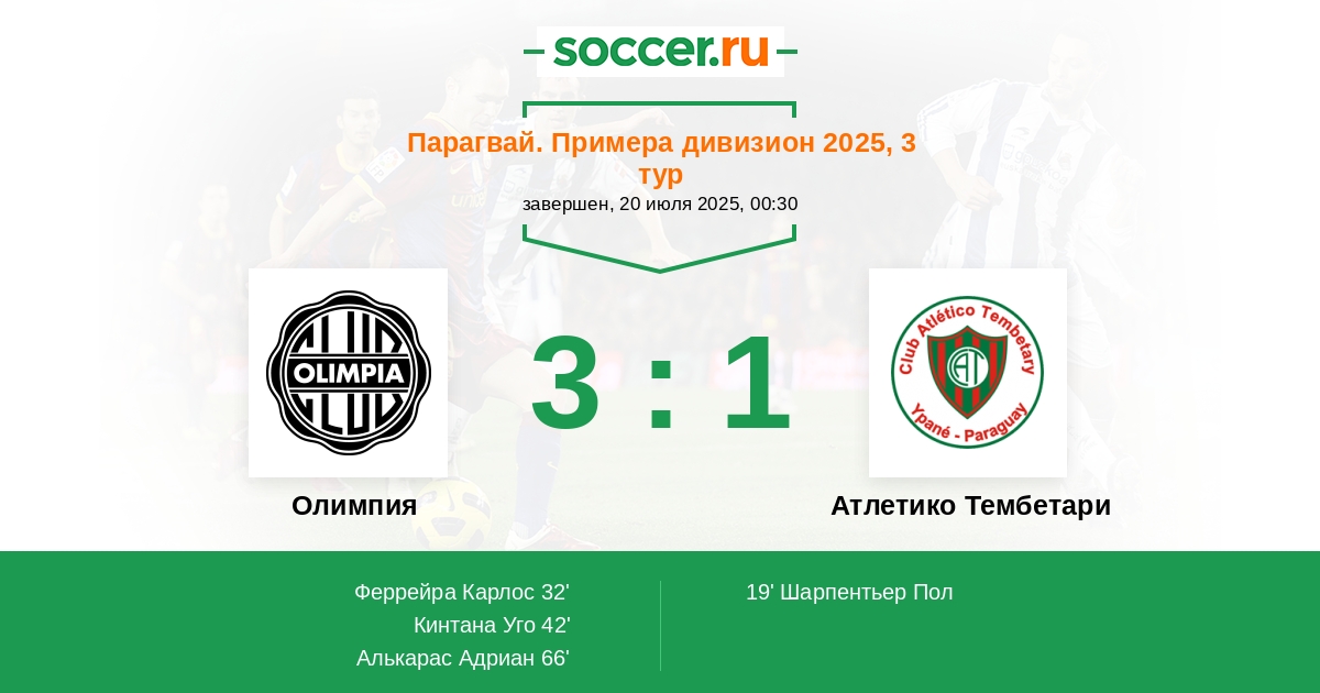 Олимпия - Атлетико Тембетари: обзор матча 20 июля 2025