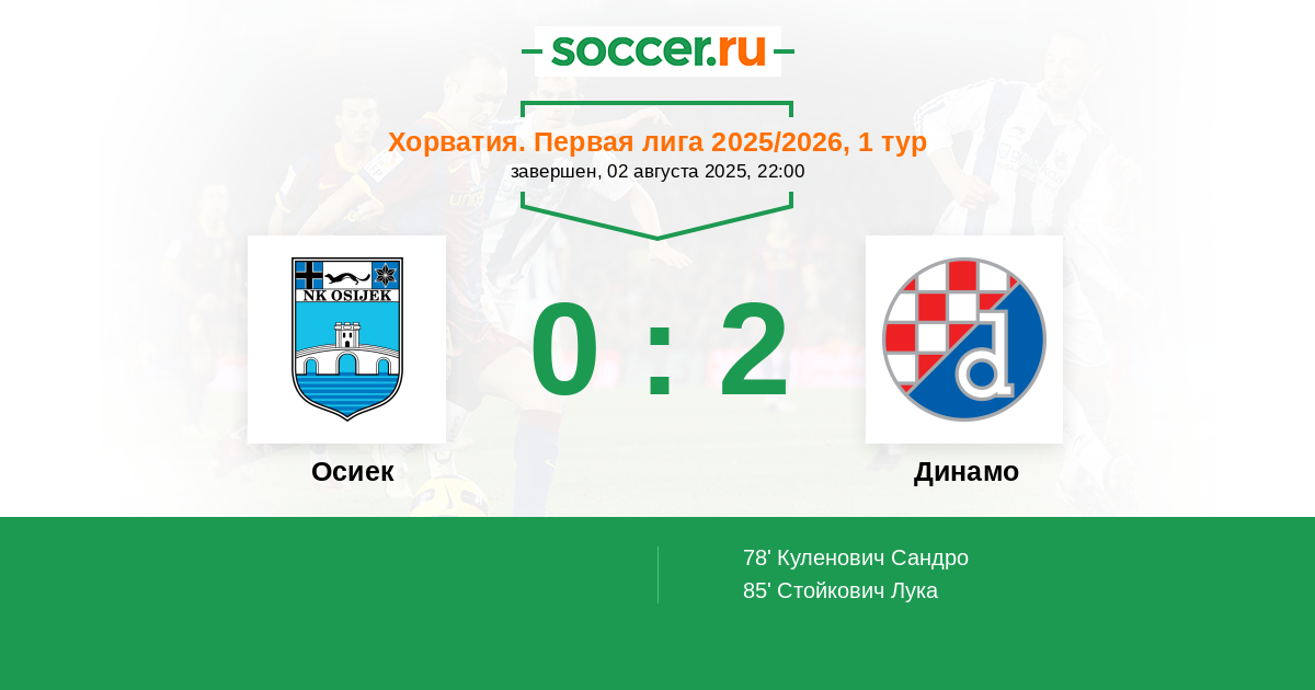 Осиек - Динамо: обзор матча 2 августа 2025