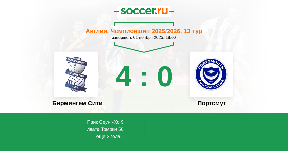 Бирмингем Сити - Портсмут: обзор матча 1 ноября 2025
