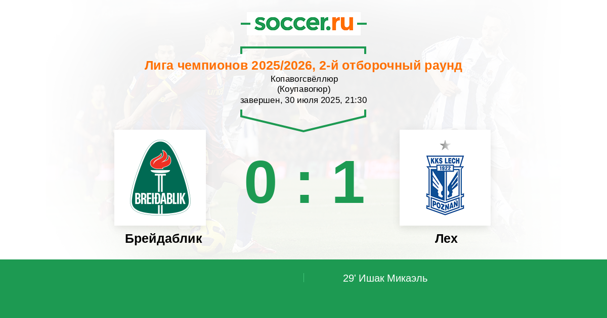 Брейдаблик - Лех: обзор матча 30 июля 2025