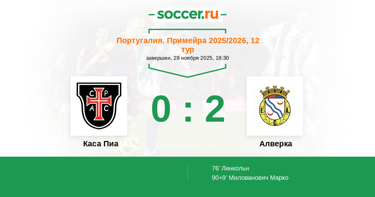 Каса Пиа - Алверка: обзор матча 29 ноября 2025