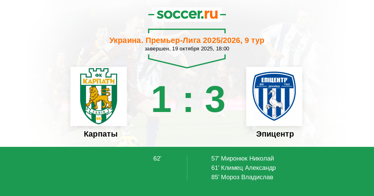 Карпаты - Эпицентр: обзор матча 19 октября 2025