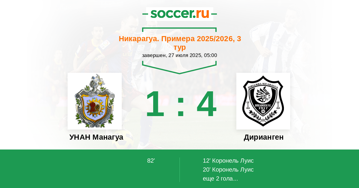 УНАН Манагуа - Дирианген: обзор матча 27 июля 2025