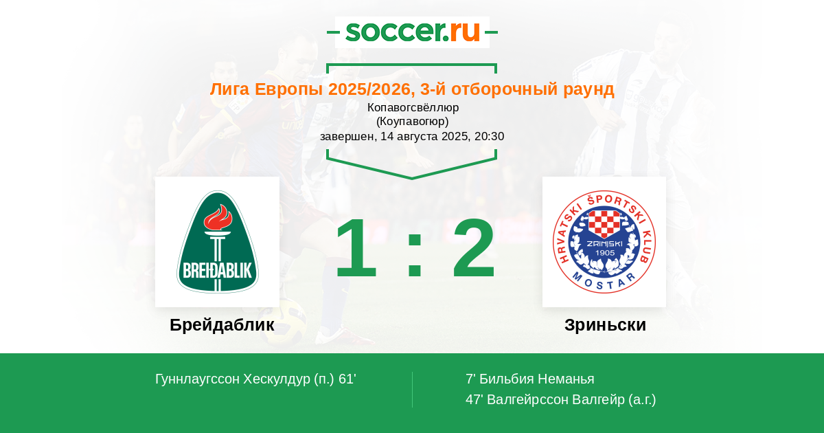 Брейдаблик - Зриньски: обзор матча 14 августа 2025
