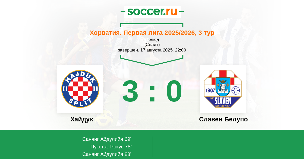 Хайдук - Славен Белупо: обзор матча 17 августа 2025