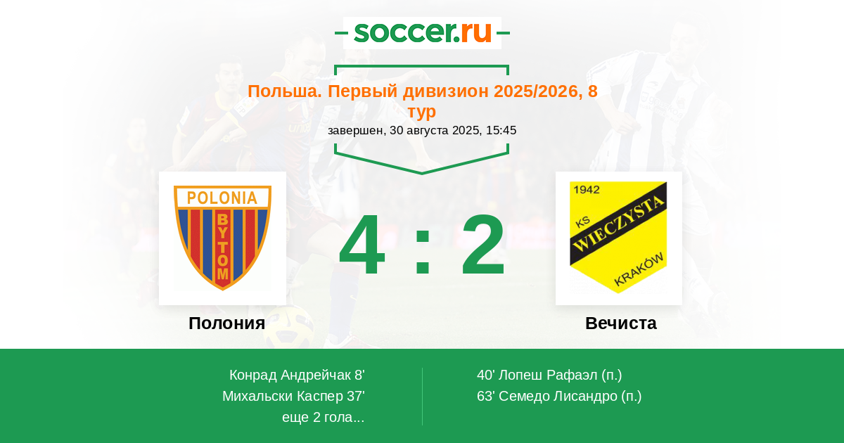 | 8. | Погонь | 9 | 4 | 1 | 4 | 0 | 13:15 | 13 |