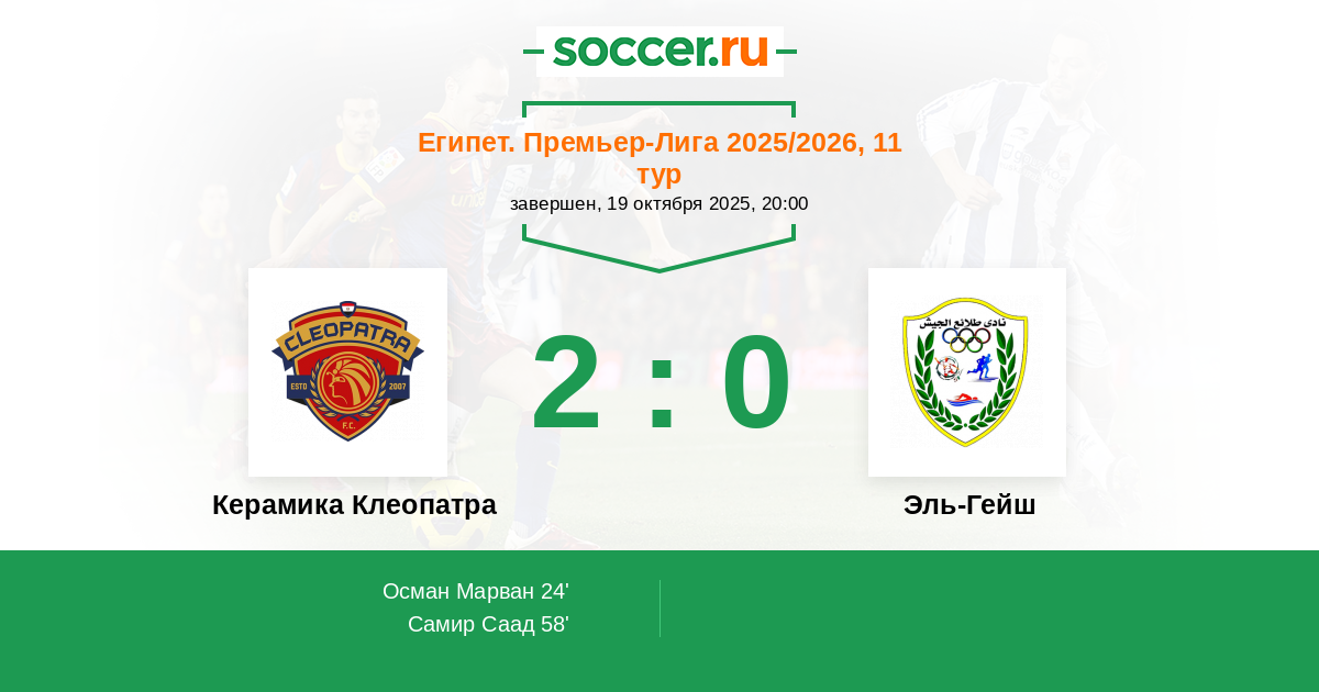 Керамика Клеопатра - Эль-Гейш: обзор матча 19 октября 2025