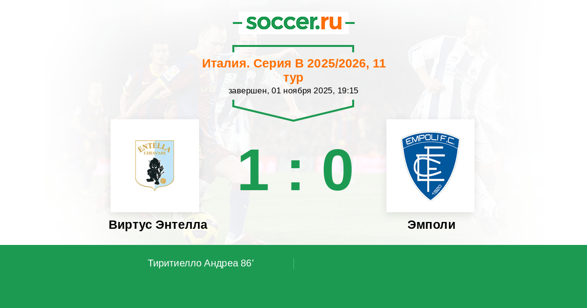 Виртус Энтелла - Эмполи: обзор матча 1 ноября 2025