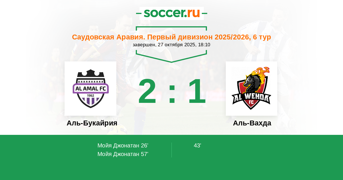 Аль-Букайрия - Аль-Вахда: обзор матча 27 октября 2025