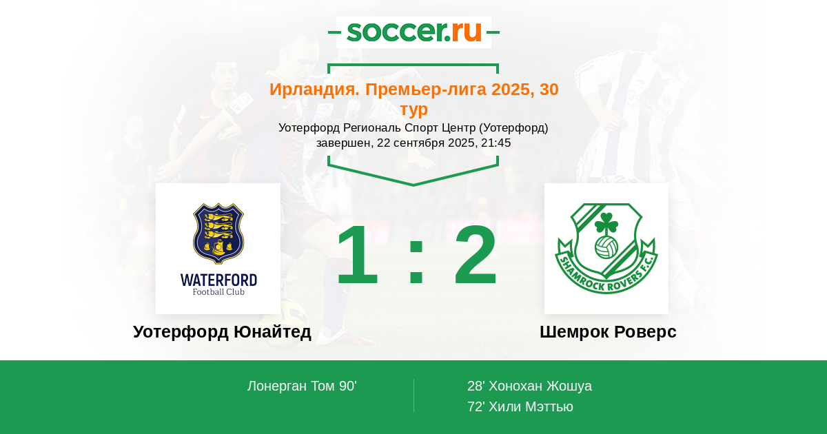 Уотерфорд Юнайтед | 36 | 11 | 6 | 19 | 5 | 41:60 | 39 |