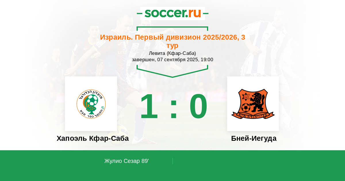 Хапоэль Кфар-Саба - Бней-Иегуда: обзор матча 7 сентября 2025