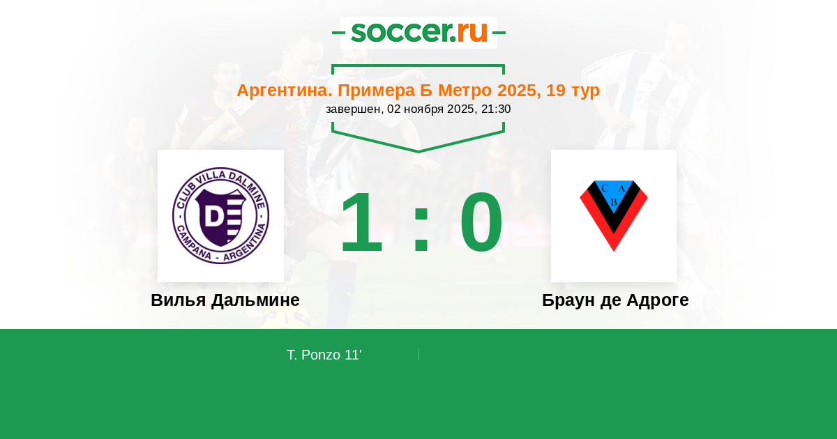Вилья Дальмине - Браун де Адроге: обзор матча 2 ноября 2025