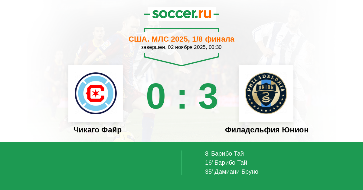 Чикаго Файр - Филадельфия Юнион: обзор матча 2 ноября 2025