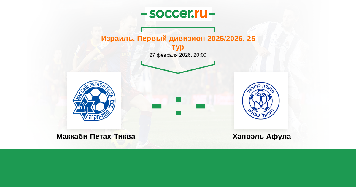 Маккаби Петах-Тиква - Хапоэль Афула турнирная таблица
