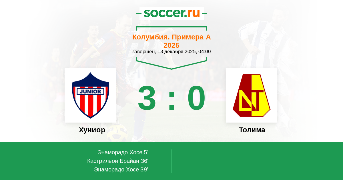 Хуниор - Толима: обзор матча 13 декабря 2025