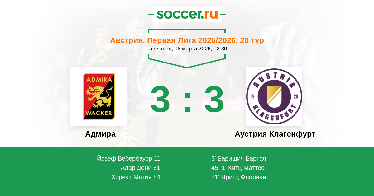 Адмира - Аустрия Клагенфурт: обзор матча 8 марта 2026