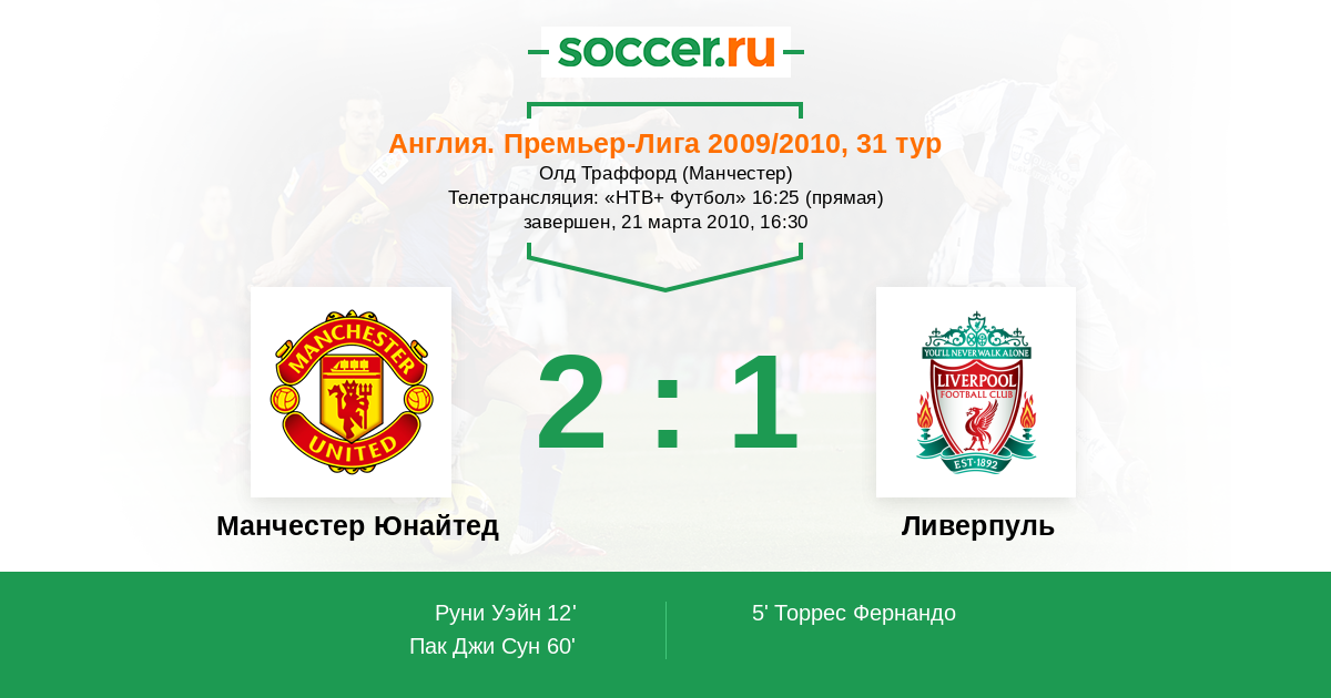 Манчестер Юнайтед - Ливерпуль: обзор матча 21 марта 2010