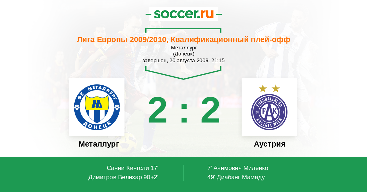 Металлург - Аустрия: обзор матча 20 августа 2009