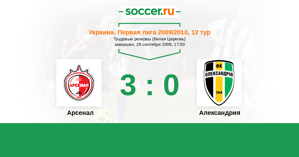 Арсенал - Александрия: обзор матча 28 сентября 2009