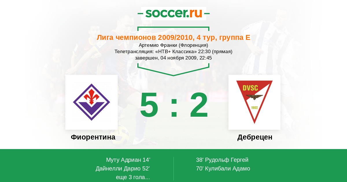 Фиорентина | 6 | 5 | 0 | 1 | 2 | 14:7 | 15 |