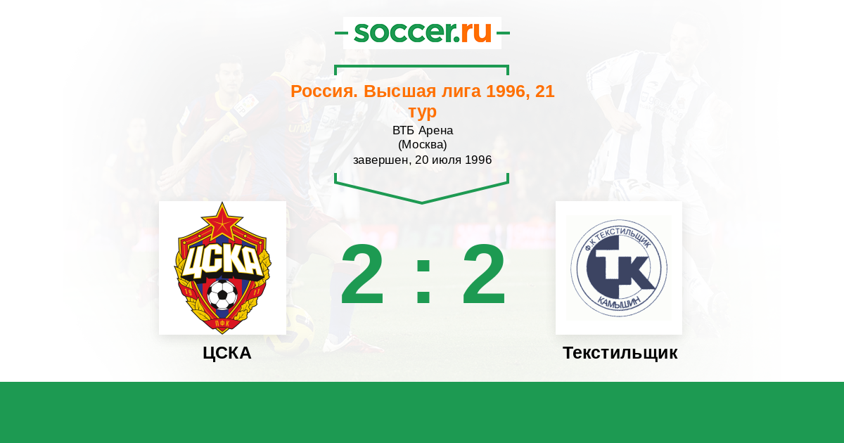 ЦСКА - Текстильщик : обзор матча 20 июля 1996