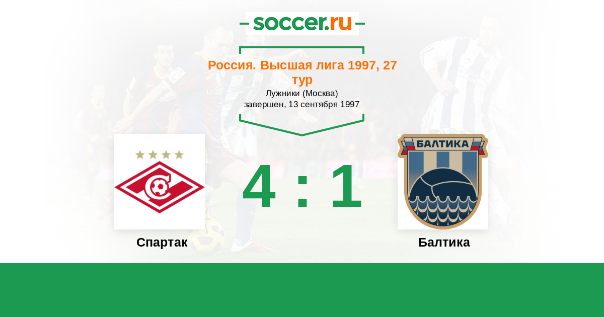 Спартак - Балтика: обзор матча 13 сентября 1997