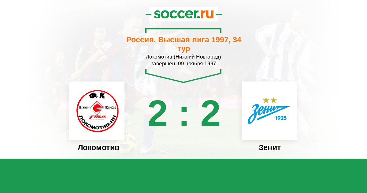 Локомотив - Зенит: обзор матча 9 ноября 1997