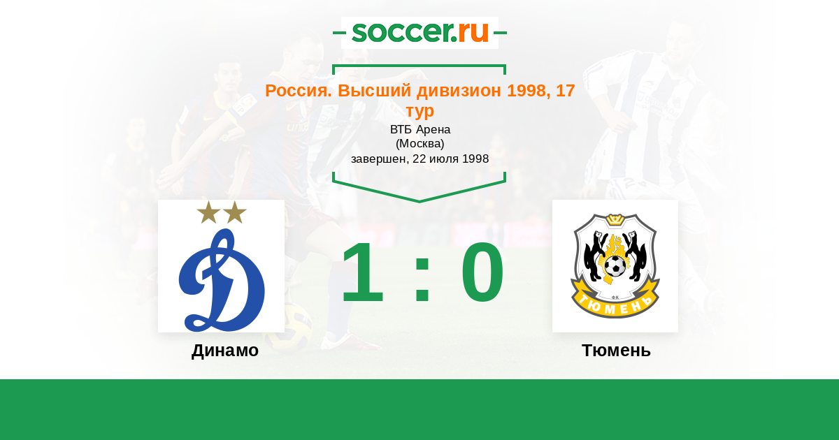Динамо - Тюмень: обзор матча 22 июля 1998