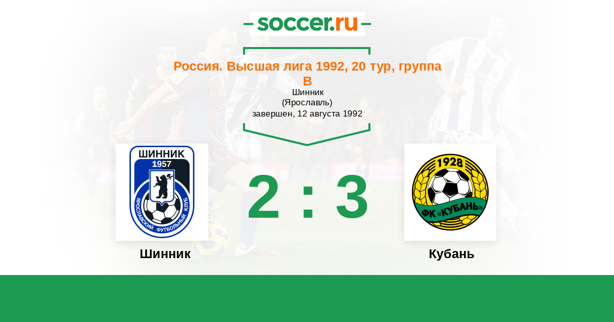 Шинник - Кубань: обзор матча 12 августа 1992