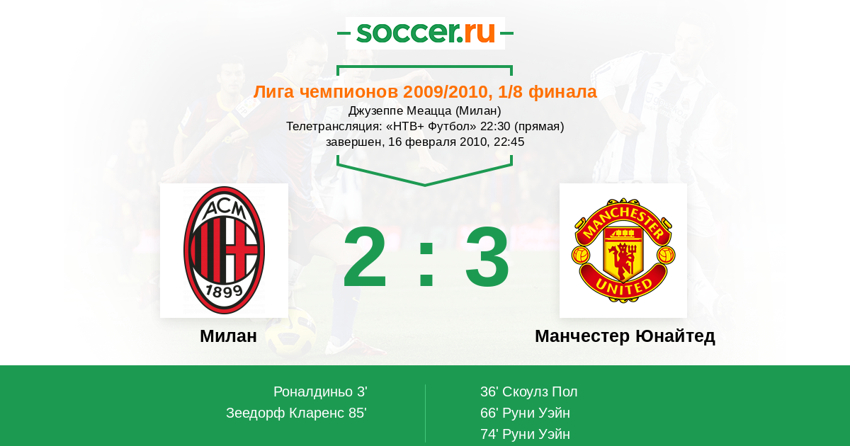 Милан - Манчестер Юнайтед: обзор матча 16 февраля 2010
