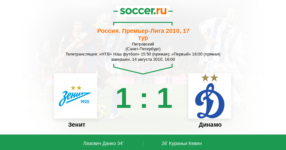 Зенит - Динамо: обзор матча 14 августа 2010