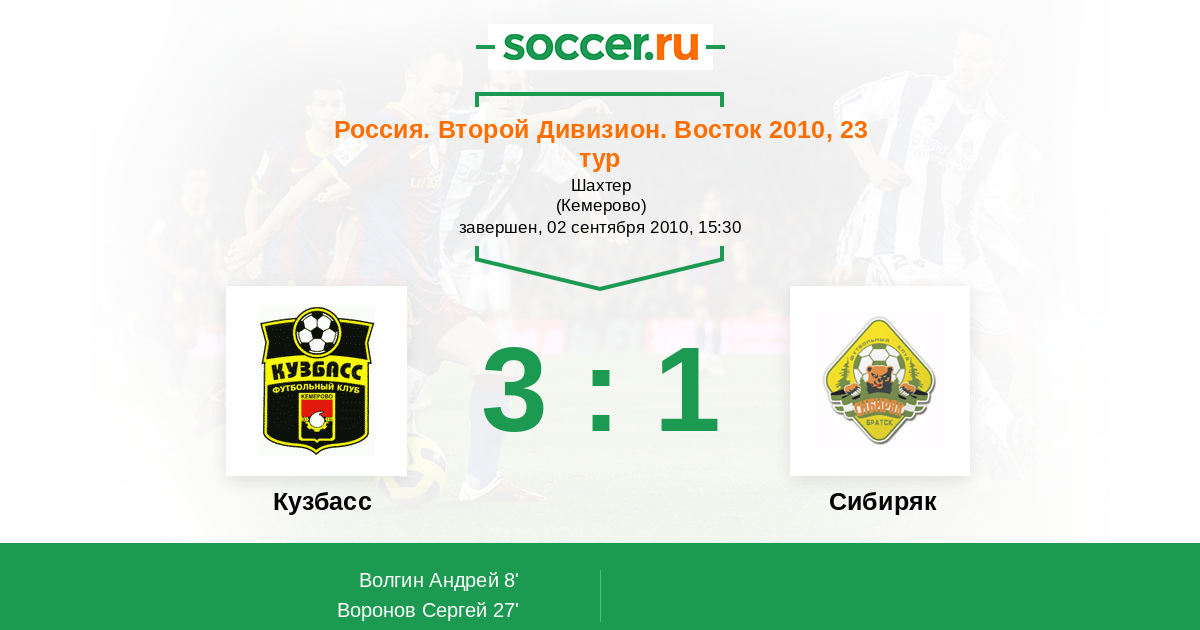 Кузбасс - Сибиряк: обзор матча 2 сентября 2010