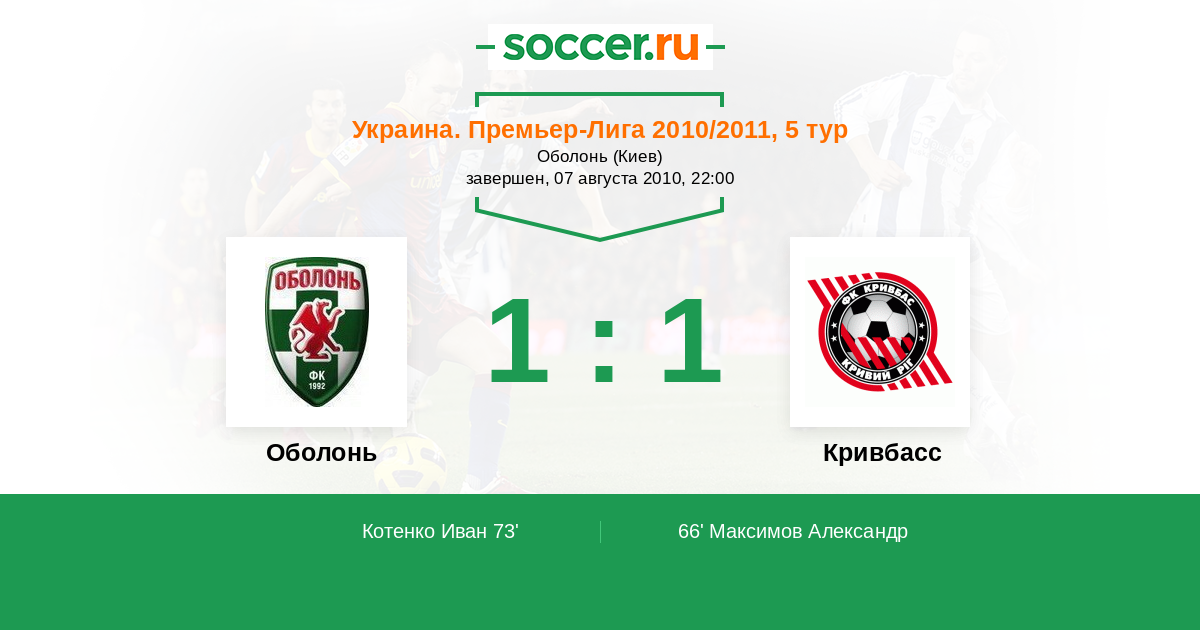 Оболонь - Кривбасс: обзор матча 7 августа 2010