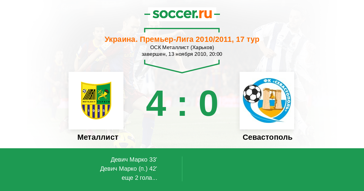 Металлист - Севастополь: обзор матча 13 ноября 2010