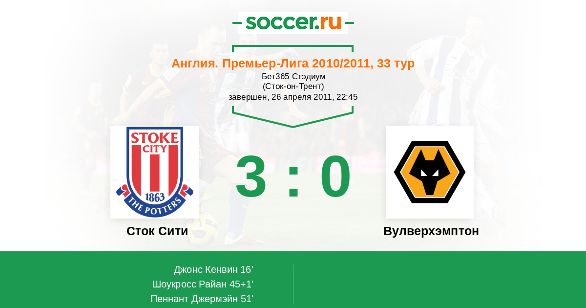Сток Сити - Вулверхэмптон: обзор матча 26 апреля 2011