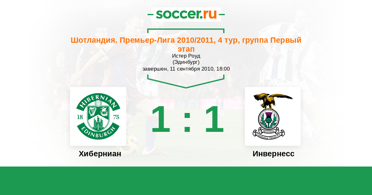 Хиберниан - Инвернесс: обзор матча 11 сентября 2010