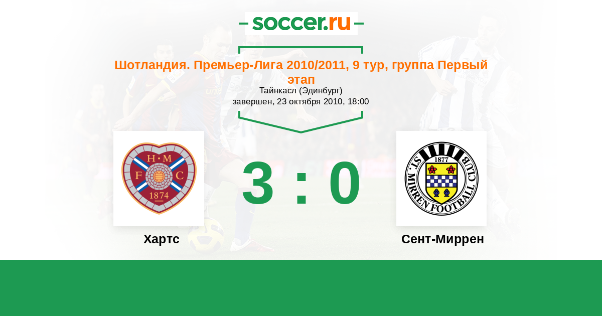 Хартс - Сент-Миррен: обзор матча 23 октября 2010