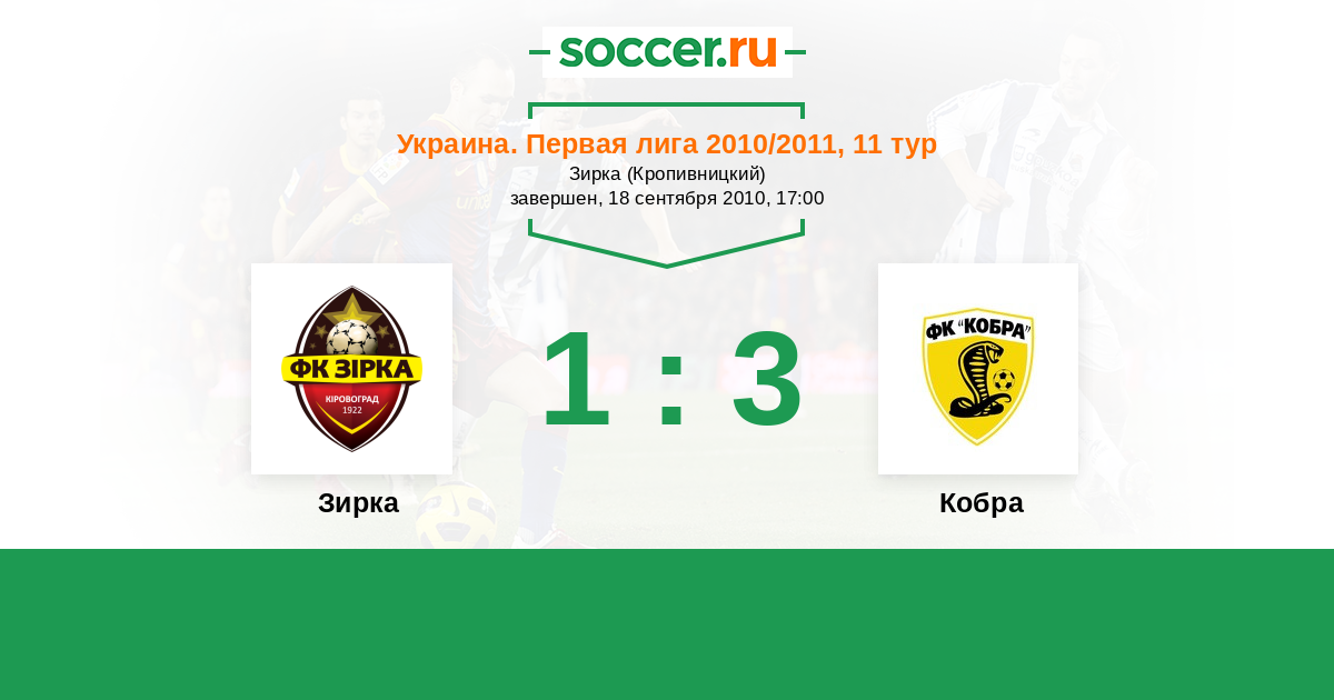 Зирка - Гелиос: обзор матча 18 сентября 2010