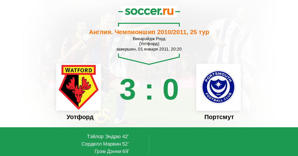 Уотфорд - Портсмут: обзор матча 1 января 2011