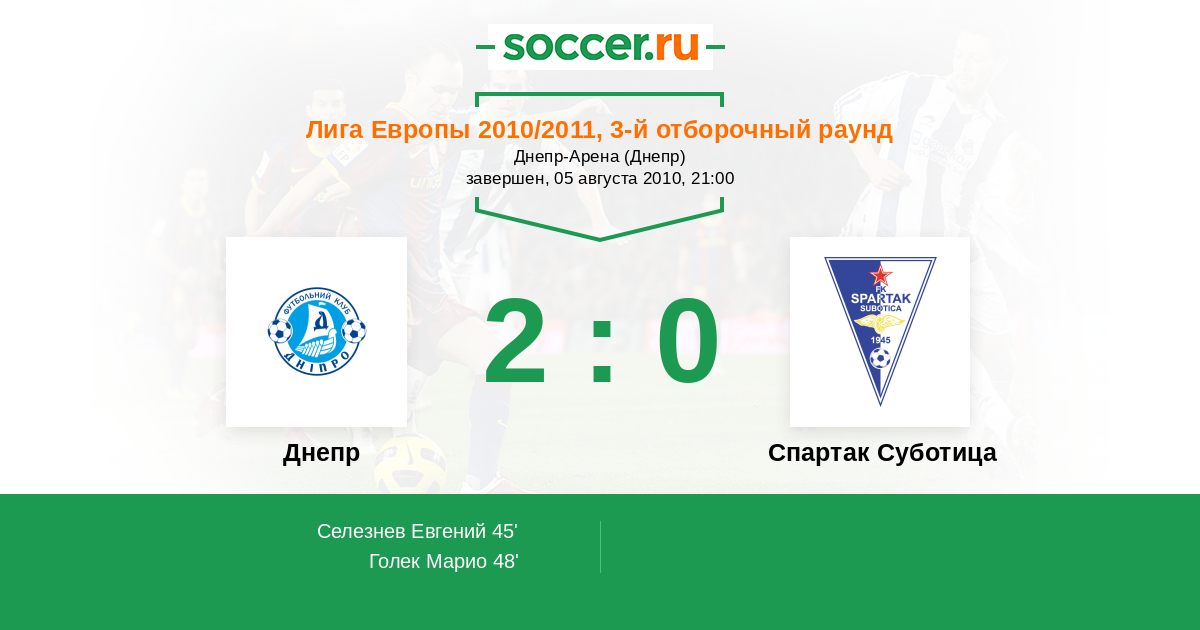 Днепр - Спартак Суботица: обзор матча 5 августа 2010