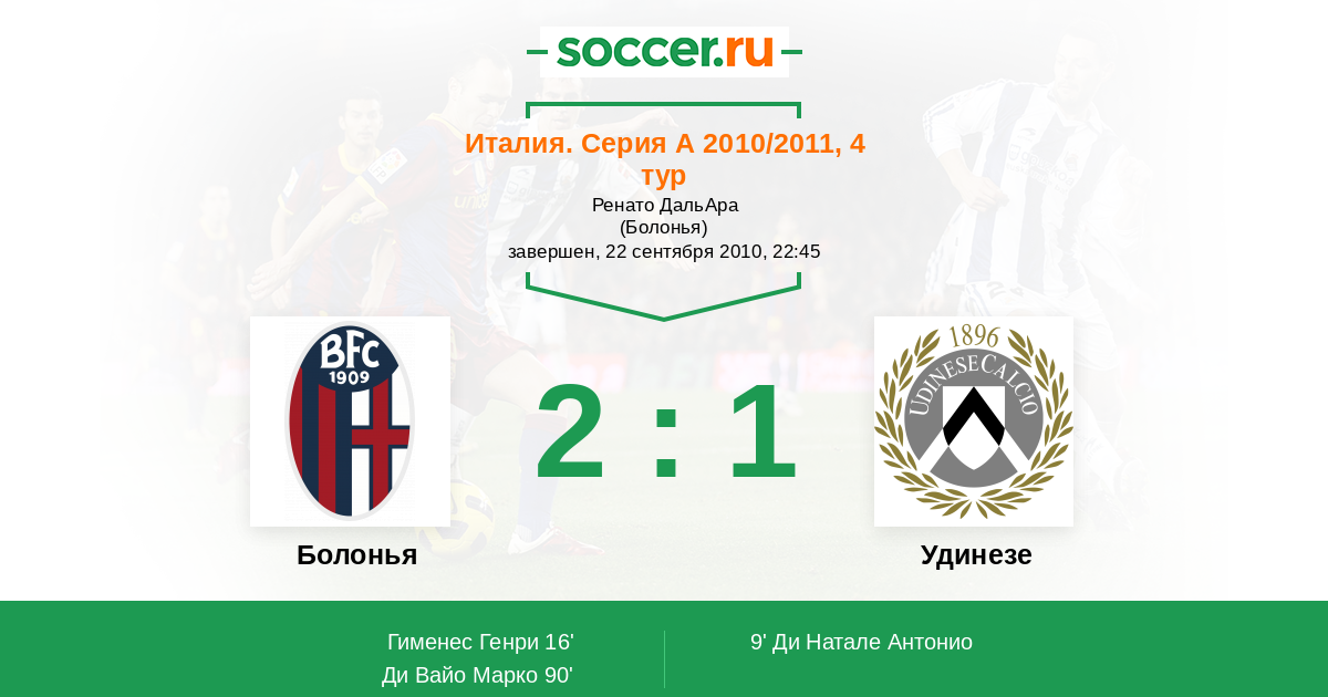 Болонья - Удинезе: обзор матча 22 сентября 2010