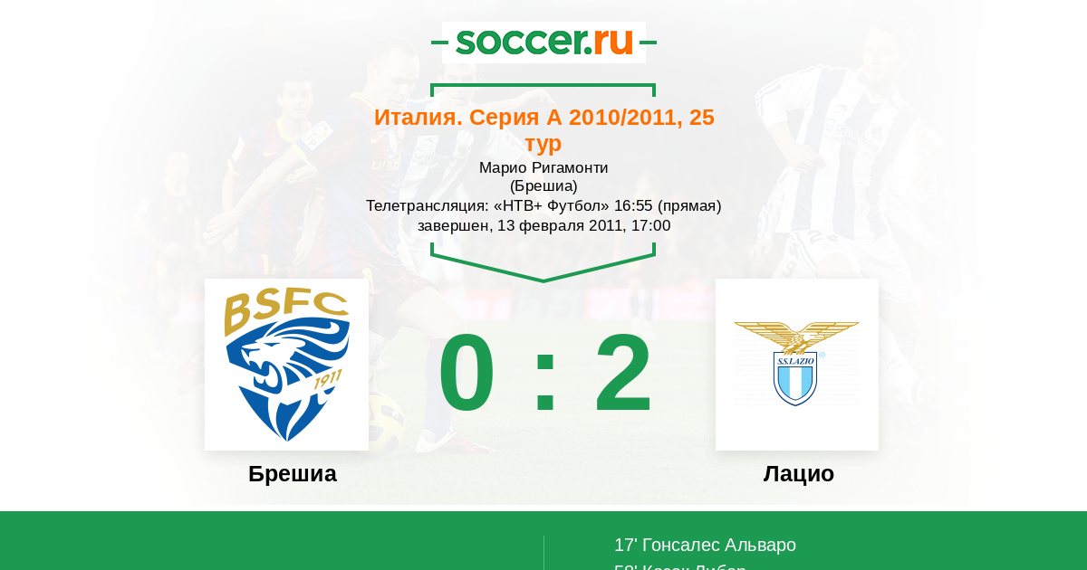 Брешиа - Лацио: обзор матча 13 февраля 2011