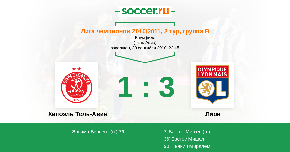 Хапоэль Тель-Авив - Лион: обзор матча 29 сентября 2010