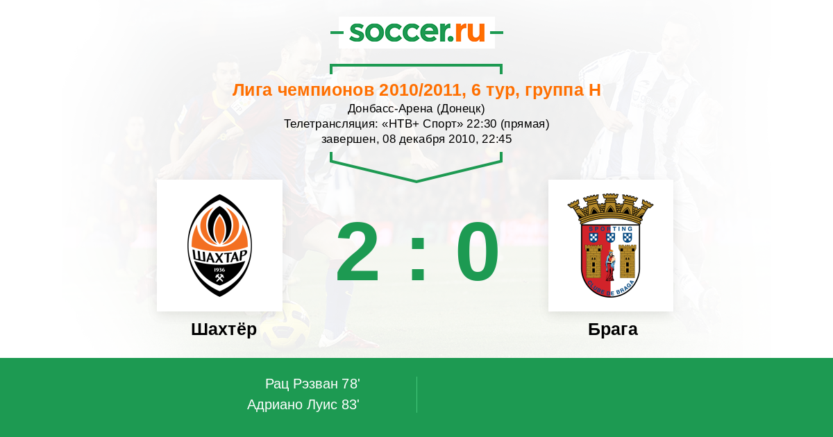 Шахтёр - Брага: обзор матча 8 декабря 2010