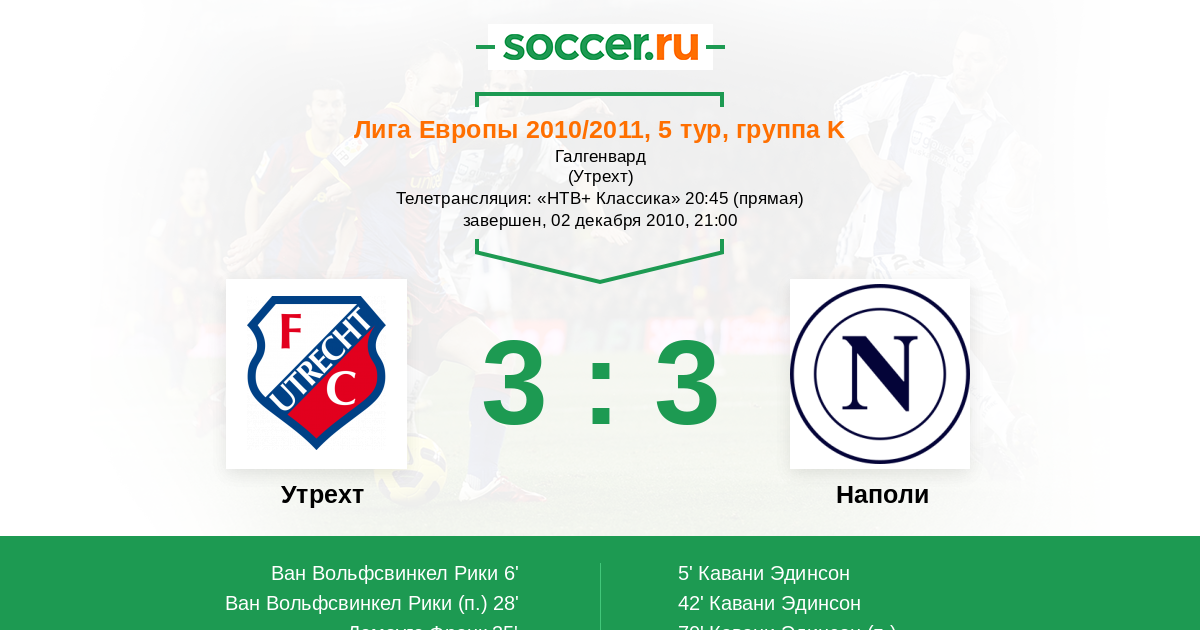 Утрехт - Наполи: обзор матча 2 декабря 2010