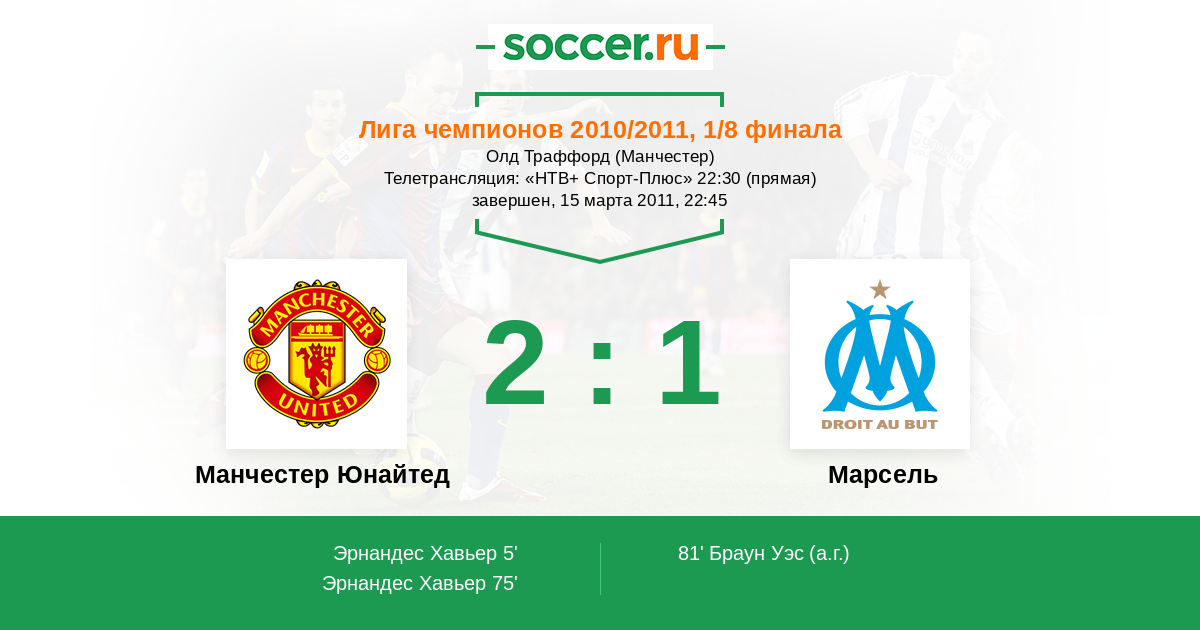 Манчестер Юнайтед - Марсель: обзор матча 15 марта 2011