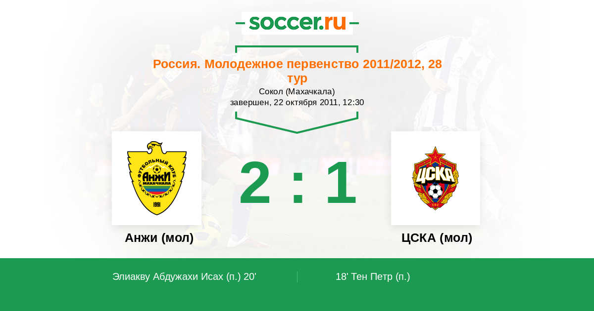 Анжи (мол) - ЦСКА (мол): обзор матча 22 октября 2011